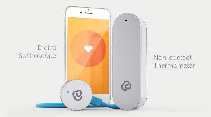 CliniCloud can digitally record respiratory and cardiovascular sounds using smartphone-connected stethoscope and non-contact infrared thermometer.Measurements recorded with these devices are then displayed inside the CliniCloud app, where the data can either be analyzed or sent directly to a doctor.